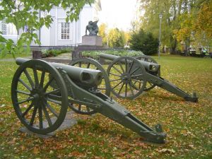 Tykit sijoitettiin vapaussodan muistopatsaan edustalle niin, että kulkureitti patsaalle meni tykkien välistä. Sittemmin tykit siirrettiin hieman kauemmas kirkkomaan kulmaukseen, mutta yhä patsaan yhteyteen.